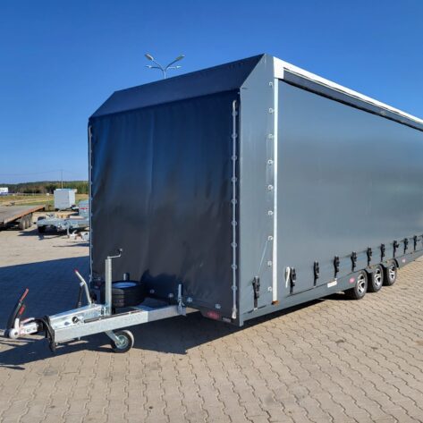 Transporteur sportif 700 x 230 x 220 cm avec rideaux coulissants sur 2 côtés, poids total autorisé en charge jusqu’à 3500 kg, transporteur universel