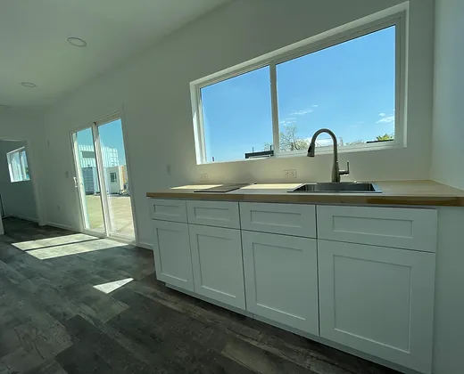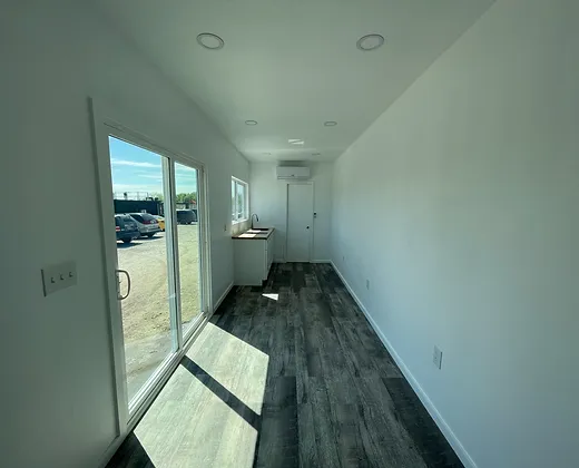 Le modèle EPINA est notre plan d’étage à concept ouvert le plus populaire et le plus flexible afin que vous puissiez transformer l’espace comme bon vous semble. Il comprend une chambre et une salle de bain de chaque côté du conteneur.
